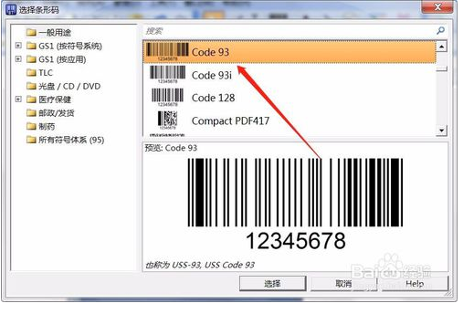 然後呢,水蜜桃视频在线观看先搞定條碼,首先點擊條碼,注意條碼的編碼方式,一般都是code93、code39、code93i,還有常用的EAN-8、EAN-13,這裏選擇code93。